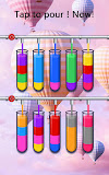 ガラスを動かして水を注ぎ、4色を1色にすると合格です!上に同じ色を注ぐことができます!